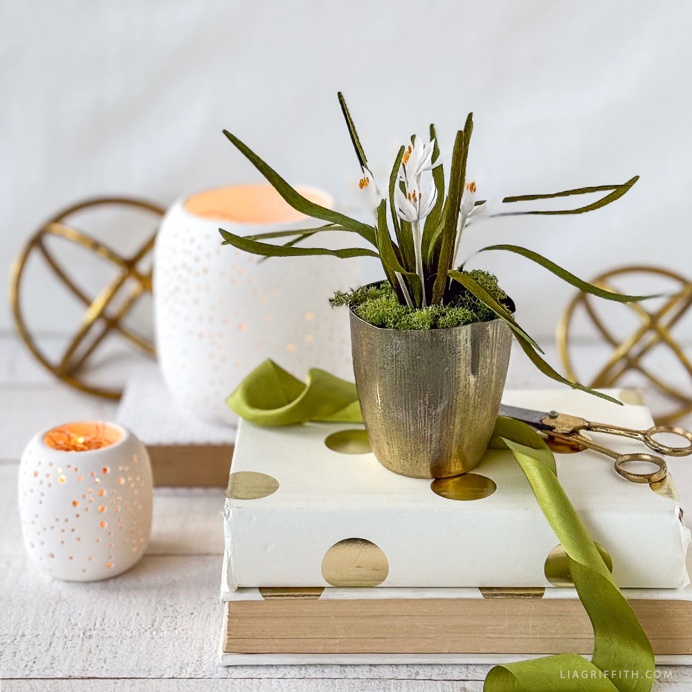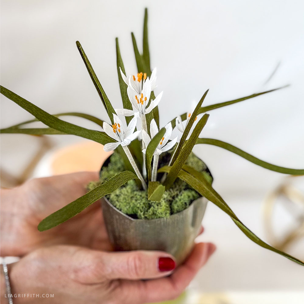 I love the graceful look of a beautifully sculpted flower — especially when used in home décor. With its tall, slender stems and trumpet-shaped blooms, this Crepe Paper Potted Sand Lily is the perfect, elegant addition to your winter plant collection. This project brings a soft sophistication to your décor — a lovely reminder that beauty thrives even in the quietest seasons.